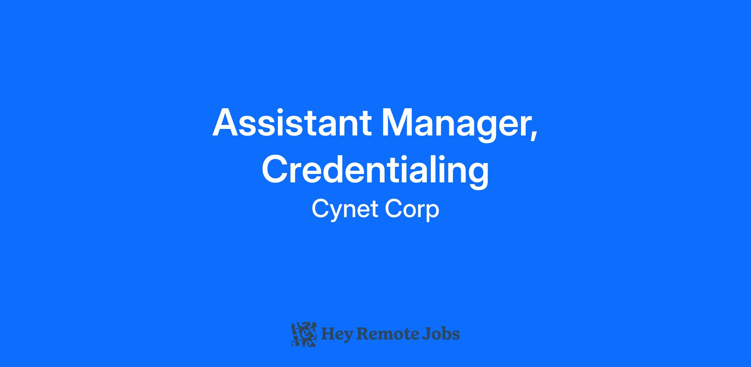 Assistant Manager, Credentialing