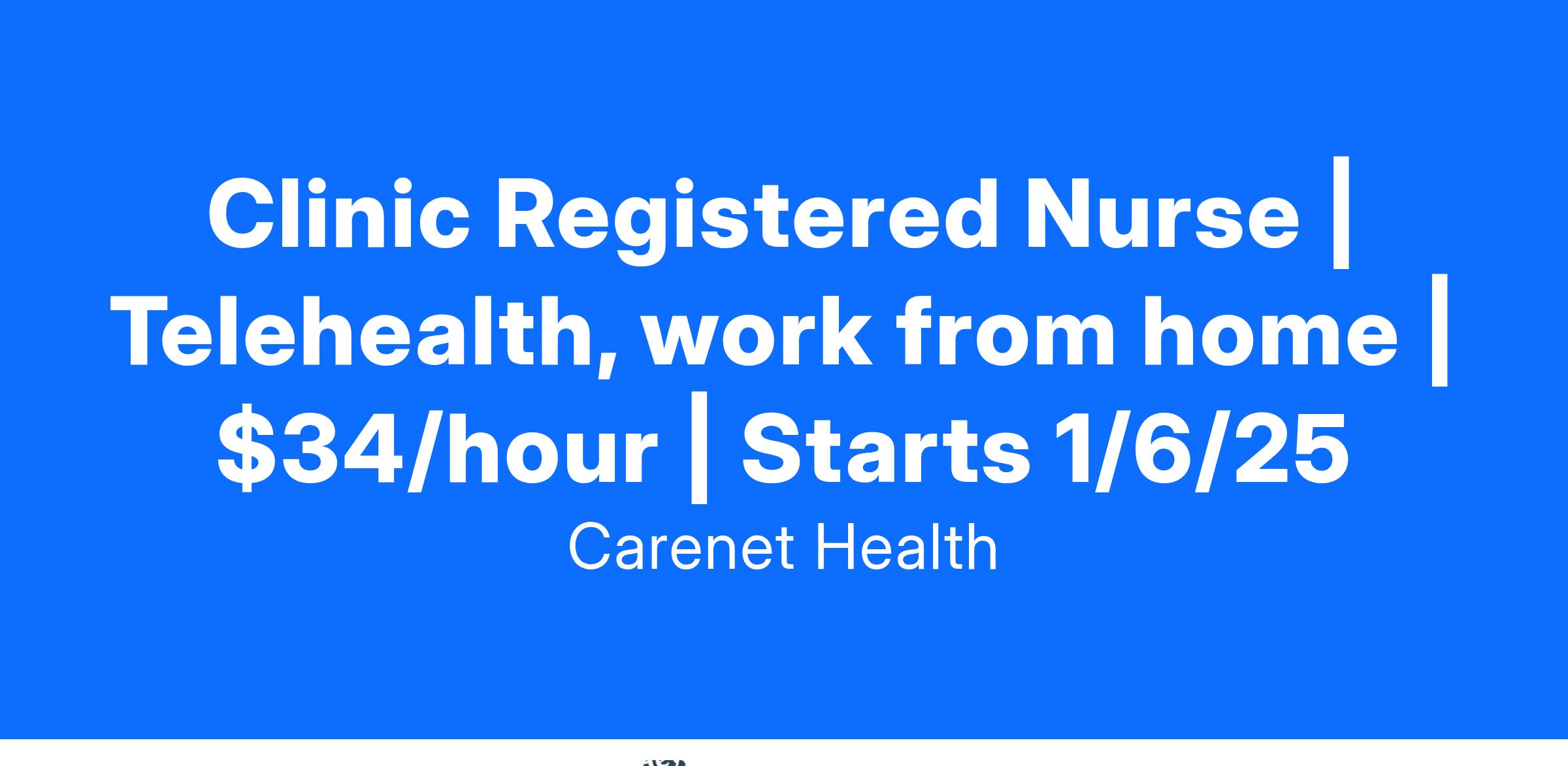 At Carenet Health, we value the expertise and dedication of our team members, and we are committed to offering an appealing compensation package. The wage for the Registered Nurse role is $34.00 per hour.