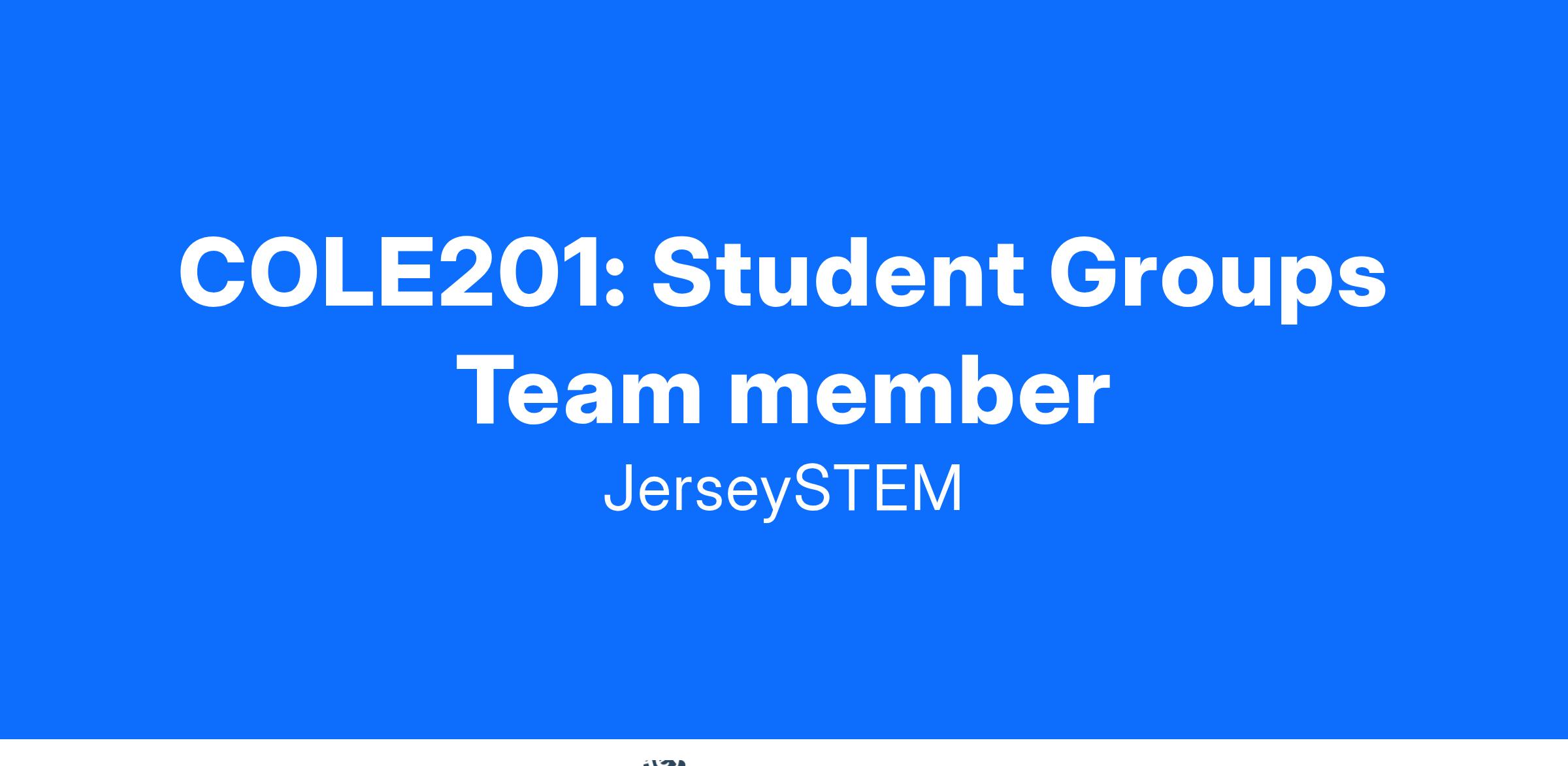 Those student groups are of 3 types: Professional (ACM, ASCE, IEEE,..) , Affinity (SHE, SWE, SHPE, WICYS),... or Greek life. JerseySTEM focuses on 30 Universities in NJ, 10 students org within each university and the 4-5 Board members of each student group.
