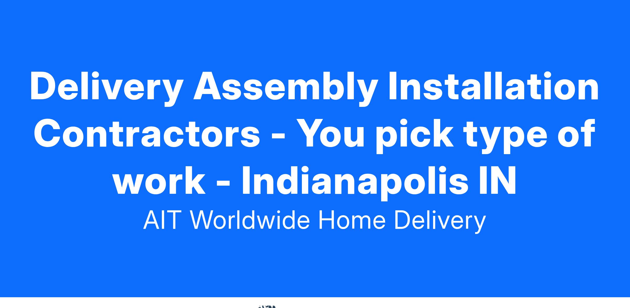 AIT Home Delivery is a division of AIT Worldwide Logistics. We have multiple types of delivery and assembly work available is 46 states. Currently in your area the following work is available.