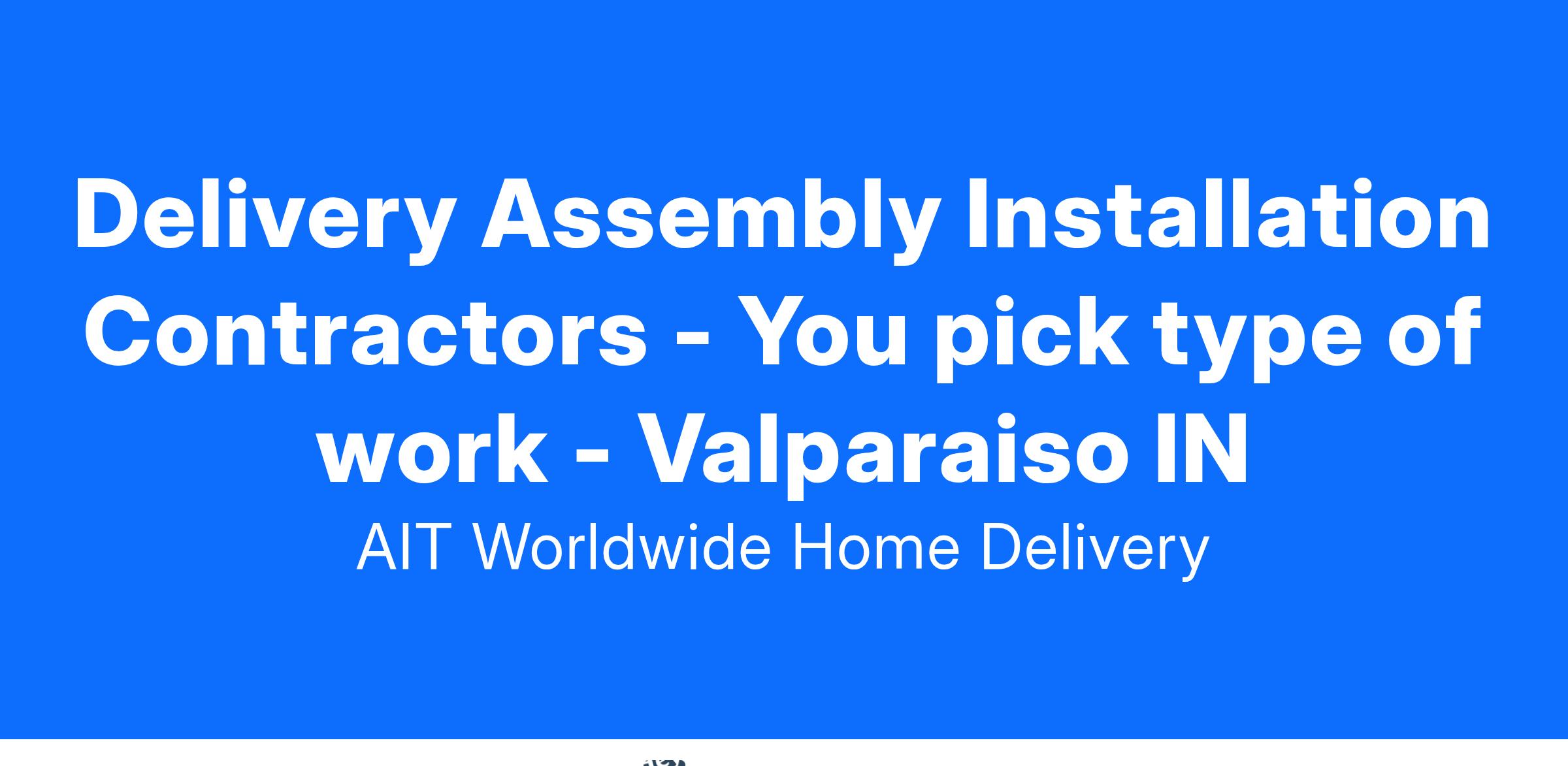 AIT Home Delivery is a division of AIT Worldwide Logistics. We have multiple types of delivery and assembly work available is 46 states. Currently in your area the following work is available.