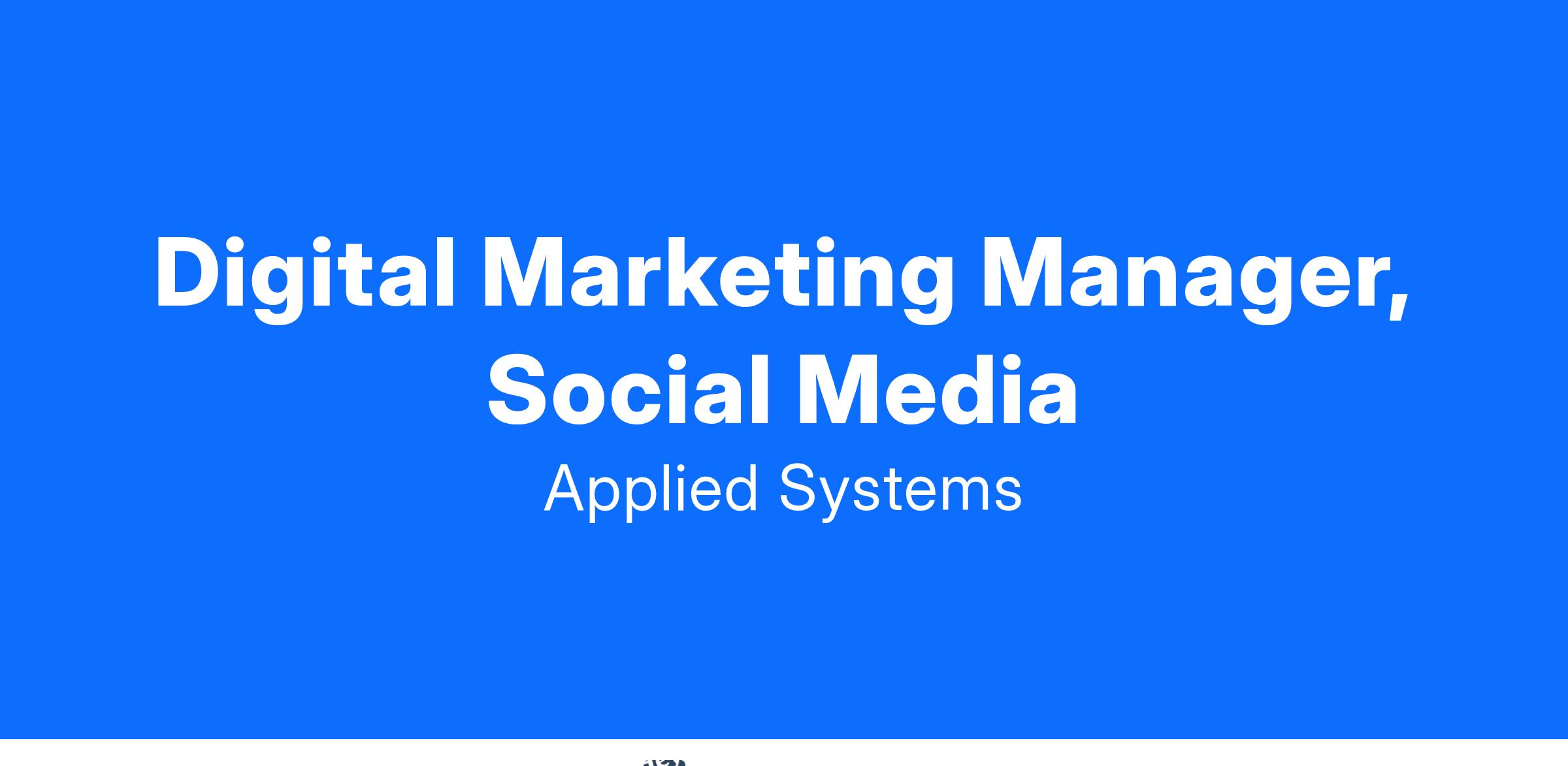 Applied Systems, Inc., the worldwide leader in insurance technology, is currently searching for a Digital Marketing Manager of Social Media to join our Marketing organization. This person will be responsible for managing all content promotion for Applied System's brands through effective use of social media channels. This role will prioritize enhancing brand awareness and achieving key performance indicators in alignment with marketing objectives.