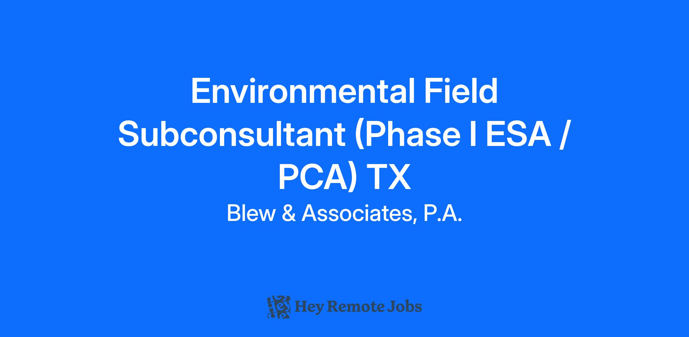- Familiarity with industry standards (ASTM for ESA, or PCA guidelines).