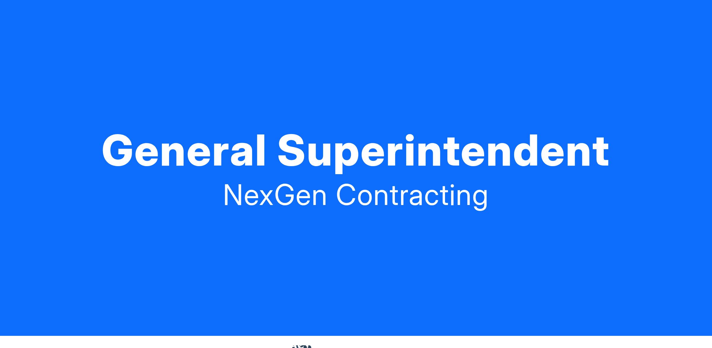 NexGen is looking for a General Superintendent to join our team.