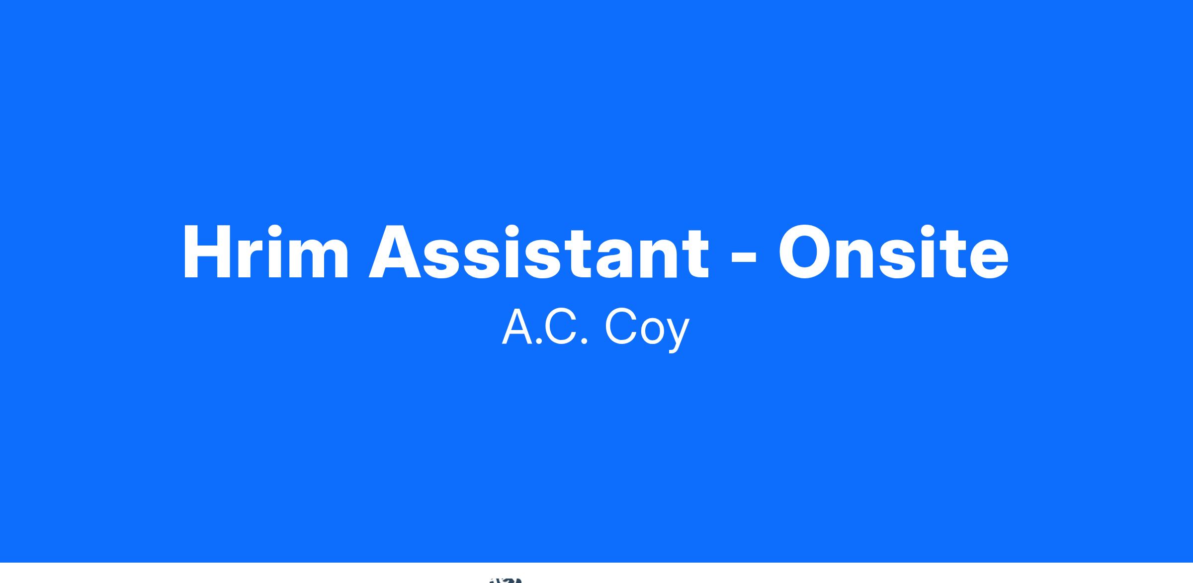 The A.C. Coy company has an opening for a HRIM Assistant. Ideal candidates must have 2+ years' experience with HRIS working with relational databases, excellent Excel skills, and a high attention to detail.