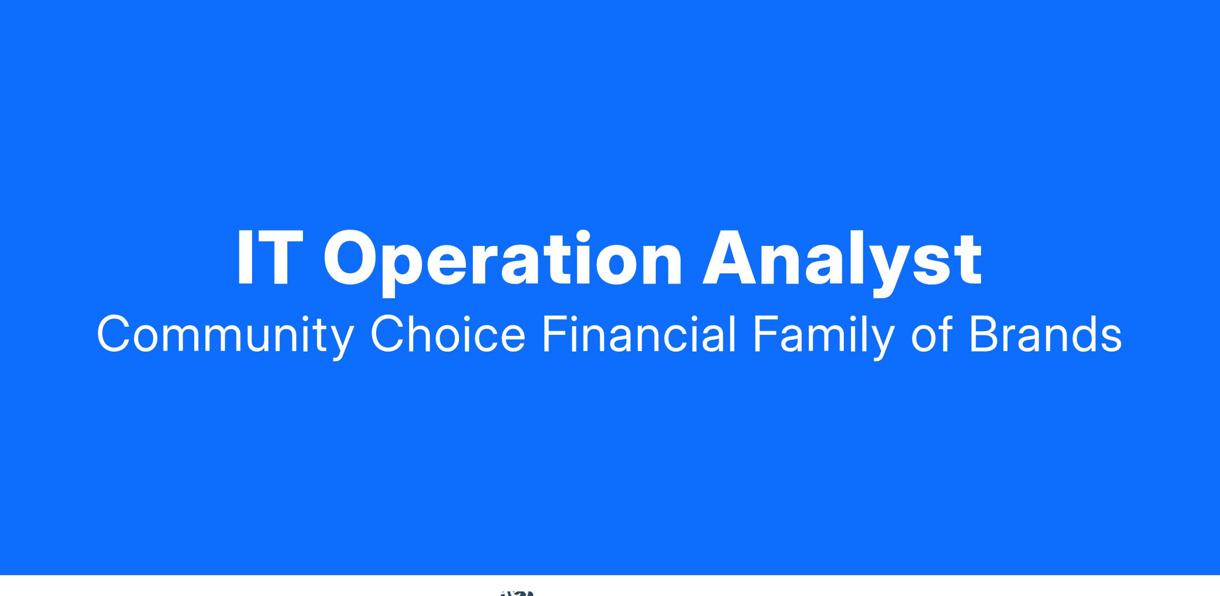 The Community Choice Financial® Family of Brands is seeking an IT Operation Analyst. The Information Technology Operation Analyst is responsible for providing excellent technical support, expedient triage and escalation of system and network issues ensuring minimal employee and customer impact.