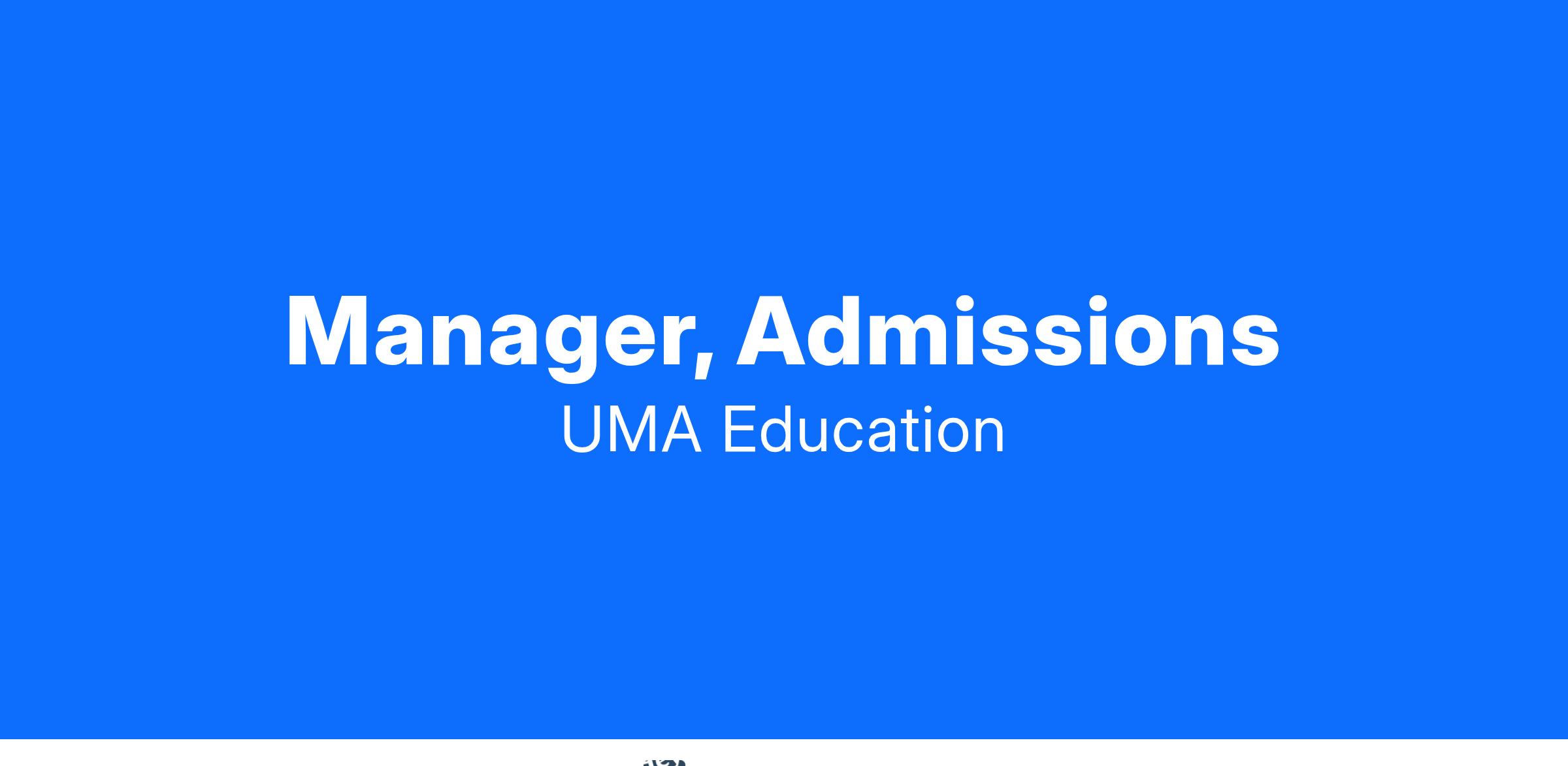 The Manager, Admissions is responsible for managing and developing a team of Admission Representatives and any Associate Manager assigned to the Manager. The Manager, Admissions supervises Admission Representatives to ensure that they are providing prospective students with accurate information about UMA’s programs in a professional and ethical manner and in keeping with UMA’s mission and values, Admissions strategy, and policies. The Manager also manages any assigned Associate Managers in supporting the student enrollment process and training and coaching Admission Representatives. This role is also expected to collaborate cross-functionally and sustain the gathering of data to accurately forecast school enrollment levels.