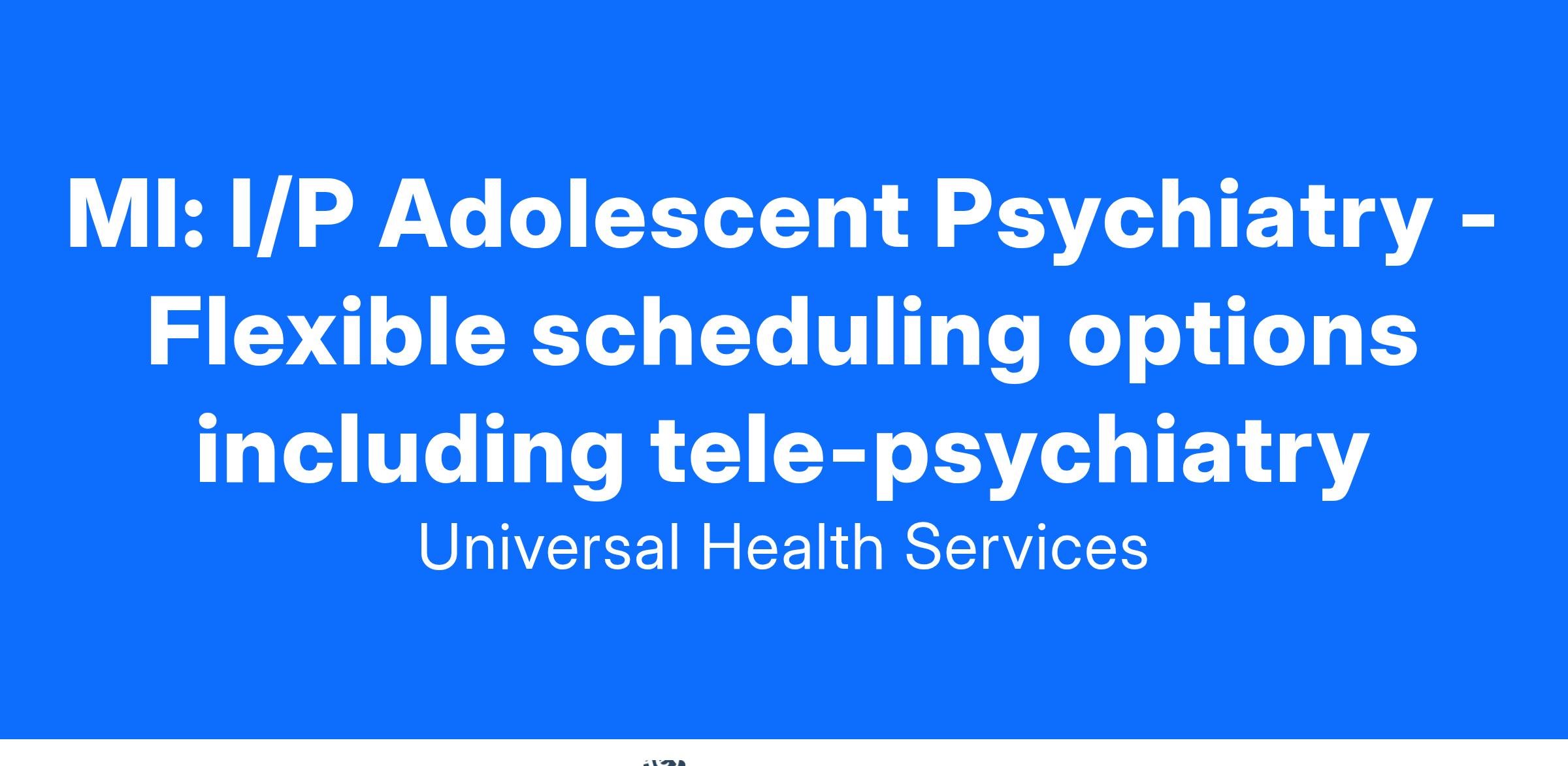 Full Time In-Patient Adolescent Psychiatry with option for tele-psychiatry