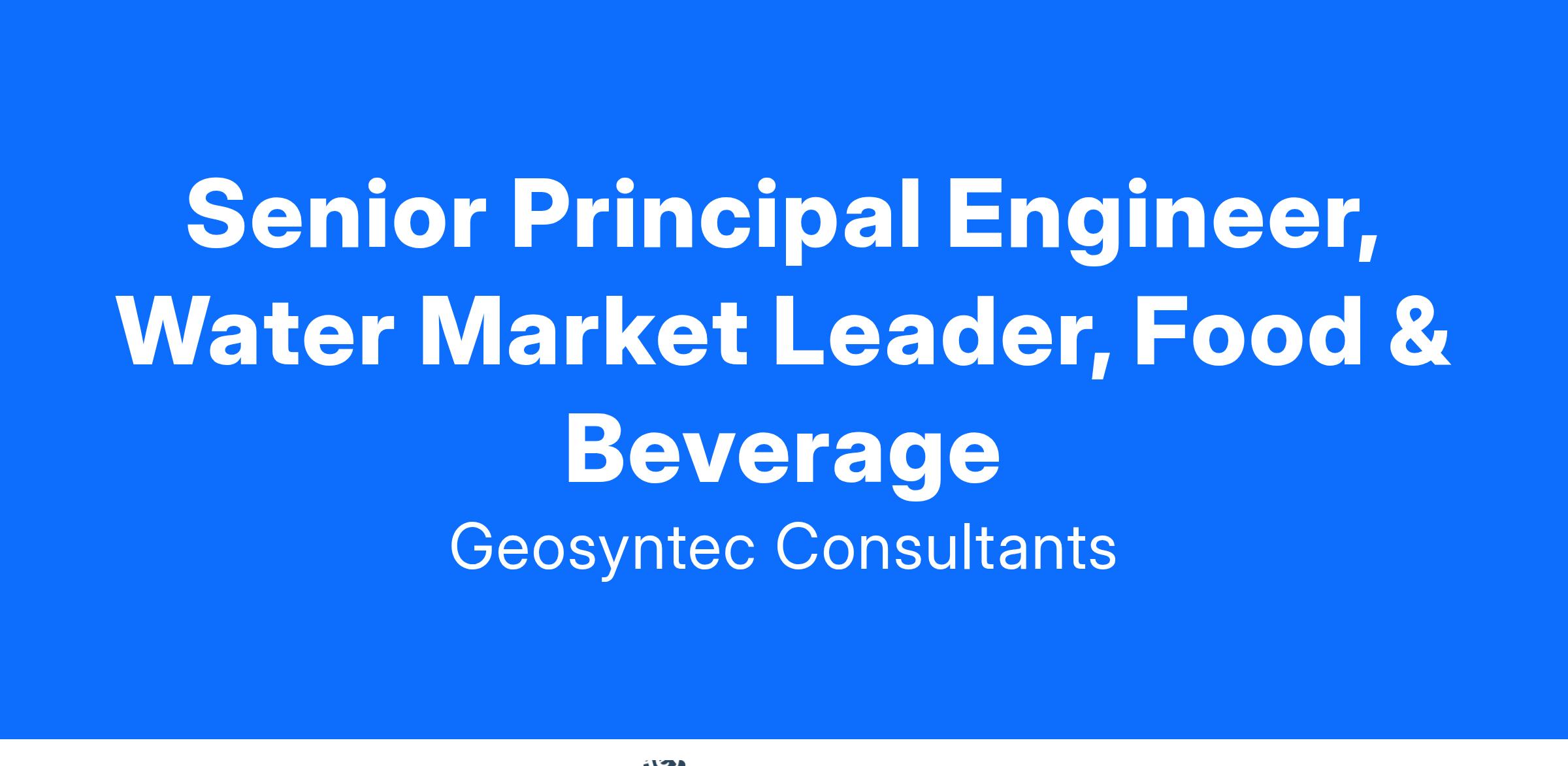 Geosyntec has an exciting opportunity for a Senior Principal Water Market Leader, Food & Beverage to help grow our water and wastewater engineering practices, this individual can be based in one of our Boise, ID, Phoenix, AZ, Pittsburgh, PA, Atlanta, GA, or Acton, MA offices or from any of our other Geosyntec based offices throughout the US. This is a unique opportunity to be part of a leadership team actively engaged in growing the water business at Geosyntec. This position will be responsible for developing and implementing a strategy for achieving significant market share for Geosyntec in the Water for the Food and Beverage market area. work with leading experts with numerous business and professional contacts who are currently developing new process engineering opportunities. The position will also support business growth associated with complex drinking water and industrial wastewater projects across the country, including positioning for and expanding capabilities for delivering full-service projects. This position is well-suited for a talented, experienced individual who is interested in winning and leading innovative and challenging water and wastewater projects, and in working with a dedicated team of peers to transform a business.
