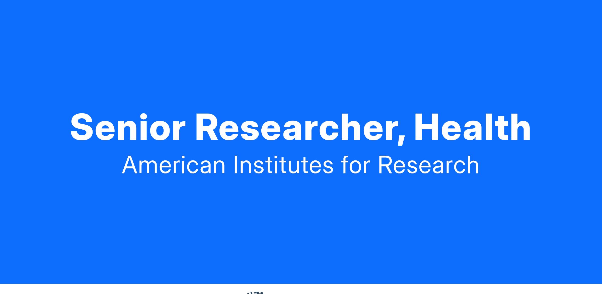 AIR’s Total Rewards Program, is designed to reward our staff competitively and motivate them to achieve our critical mission. This position offers an anticipated annual salary of $115,000 - $145,000. Salary offers are made based on internal equity within the institution and external equity with competitive markets. Please note this is the annual salary range for candidates that are based in the United States.