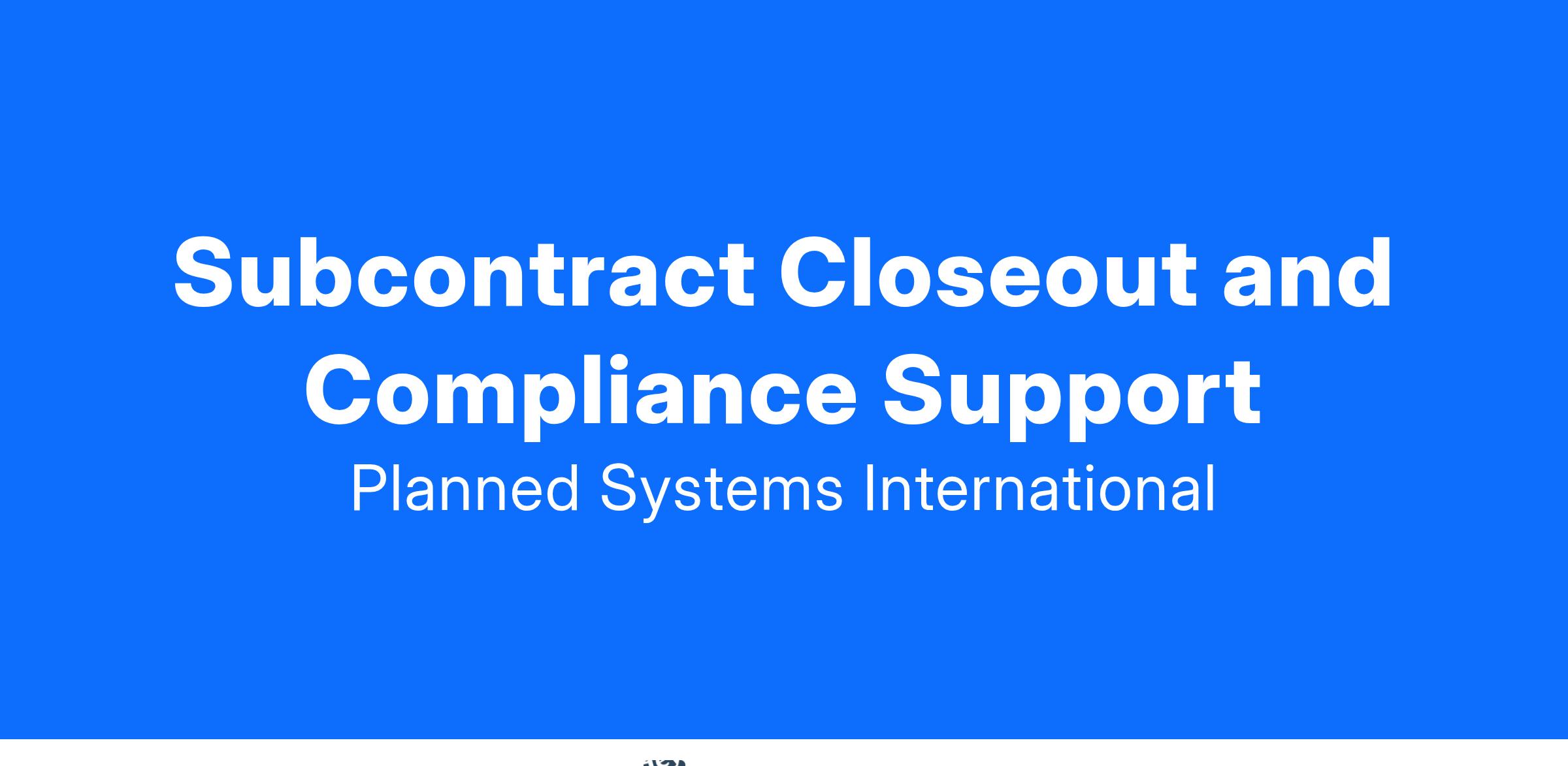 1. Closeout the backlog of subcontracts for the acquisition services group.