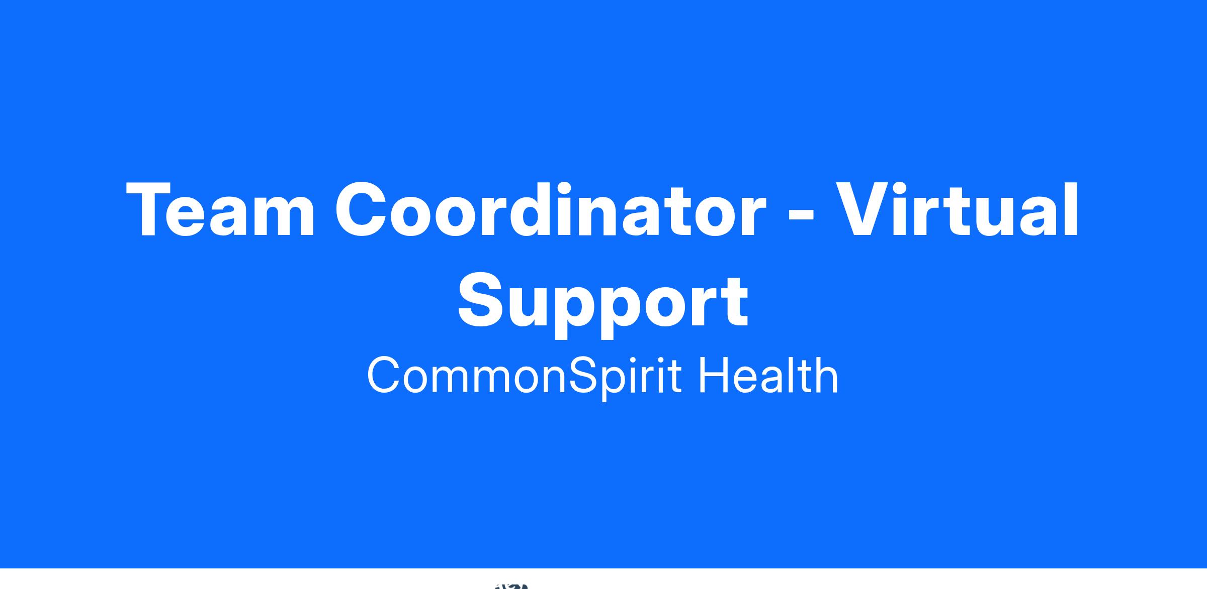 Team Coordinator –Virtual Support (TC)- Performs one or more assigned functions critical to the success of the Organization’s branch location(s) virtually including intake, health information data entry, medical records, scheduling. Contributes to the organizational success of providing high quality care by effectively coordinating location(s) office functions supporting patients, caregivers and employees. In addition, the virtual TC has a larger scope and impact and is responsible for all assigned workflow for designated locations, with assignments based on the needs of the Organization.
